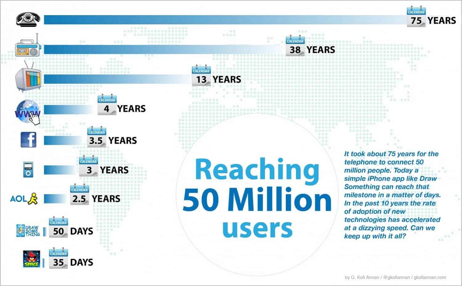 Compared to other forms of communication, social platforms has seen rapid growth at an unprecedented rate. Facebook, for example, reached 50 million users in only 3.5 years after it’s introduction in 2004. In January 2018, it was estimated that there are 3.196 billion active users across all social platforms. With a global population of 7.6 billion people, this means that 42% of the population has a social presence. These numbers are expected to continue rising based on the trends we’ve noted.